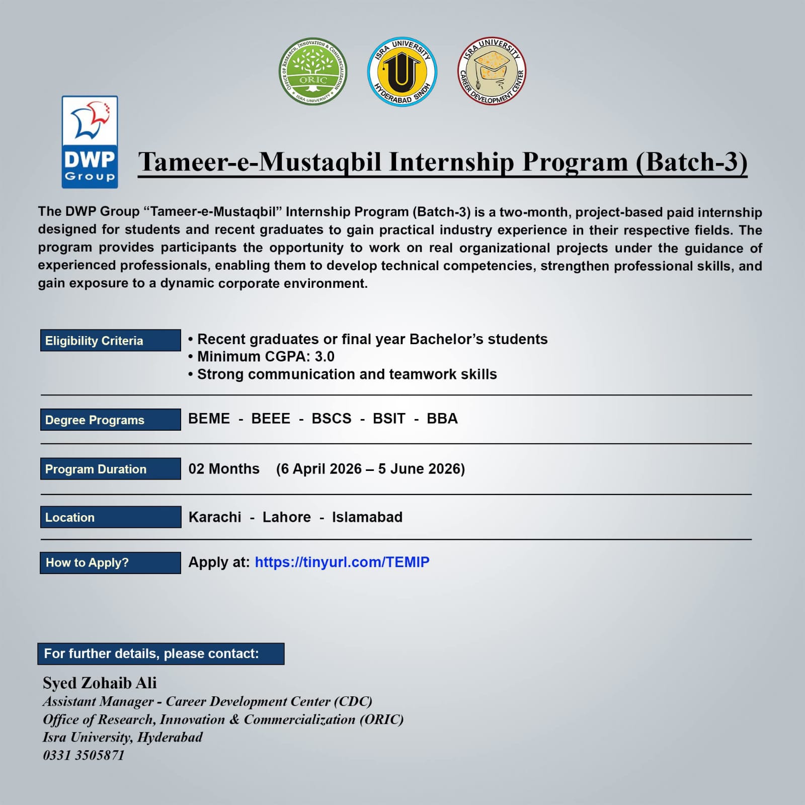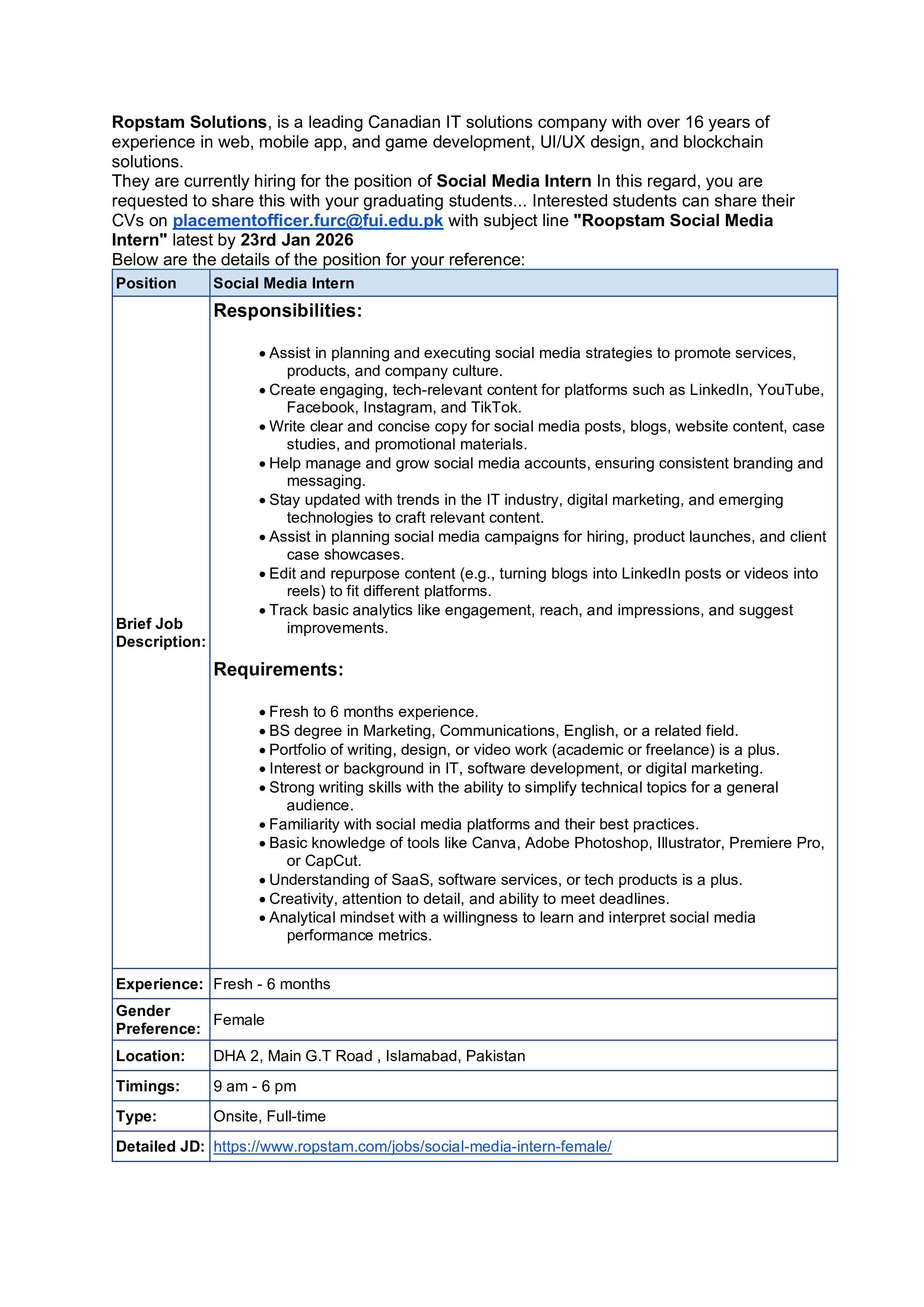 Ariqa Qadir Rana, Secretary, Alumni Association Foundation University’s holistic Mass Communication program equipped me with the skills and knowledge to thrive in the ever-evolving media landscape. As someone who entered the university premises as a teenage dreamer and now serves as a Digital Content Creator in the Corporate Industry, my simple advice for students is that embrace every opportunity, make connections, engage in meaningful conversations with people and enhance your skills and knowledge. Believe me, a dedicated six months of focus can set you on a trajectory that would lead to the realm of your ideals. The Alumni Associate is here as a supportive network to guide and inspire you. Cherish your time at Foundation University and lay the foundation for a successful and fulfilling career in the field. Best of luck on your academic endeavours!